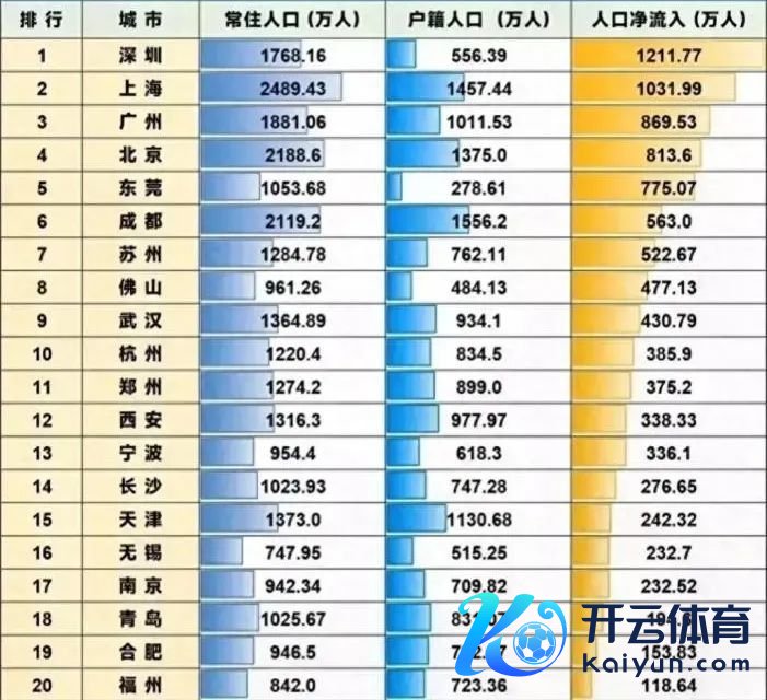 1、东谈主口流入的城市